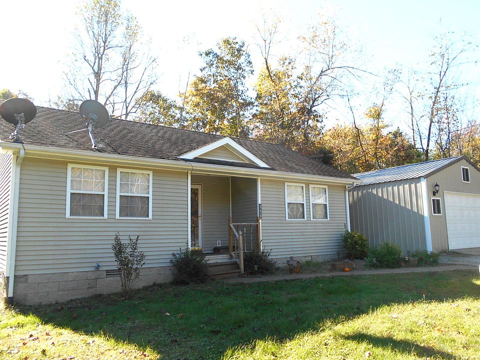 VINYL SIDING, NICE KITCHEN CABINETS & PANTRY CLOSET, LAMINATE FLOORS, FOYER WITH CLOSET, COVERED REAR DECK, LARGE DETACHED GARAGE WITH WORKSHOP AREA, DETACHED BUILDING WITH FRONT PORCH, APPROX. HALF ACRE LOT, 2 DRIVES FOR PARKING, EDGE OF BUTLER COUNTY & GRAYSON COUNTY LINE.