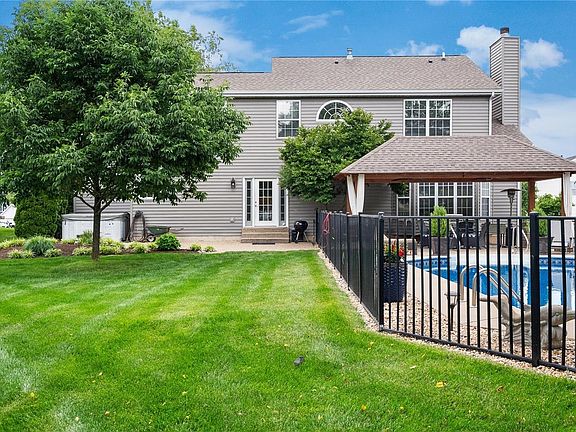 Welcome Home! This 4 bed 3 bath home has all you need, including a pool! Boasting over 2,650 square feet, plus a partially finished lower level, there are so many upgrades to this one. The kitchen comes with custom cherry cabinets, a bar area with beverage center, granite countertops, a huge island with stone accents and much more. The living room has a beautiful fireplace surrounded by custom shelving. New Luxury Vinyl Plank flooring throughout the office, dining, and living area, recessed lighting throughout the main floor. Upstairs you will find 4 bedrooms including the spacious master, which has vaulted ceilings, a walk in closet, and a luxury 4 piece master suite including heated tile flooring, a double bowl vanity, free standing tub and shower with glass doors. The basement offers a rec room, sleeping area, and den. The outdoor area is an entertainers dream, with a salt water pool, a giant patio with a hot tub and a custom pergola. There are so many more features, come see!