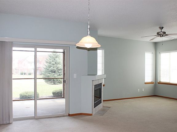 Easy condo living! Nice East side first floor condo with 2 bedrooms, 2 baths and 2 car garage. Open floor plan offers kitchen with breakfast bar, dining area, and fireplace in living area. Sliders from dining area lead to screen porch for relaxing! Master with 3/4 bath. Laundry room with washer and dryer included! Nice sunlight throughout. Bank owned, no sellers disclosure, being sold "AS IS".