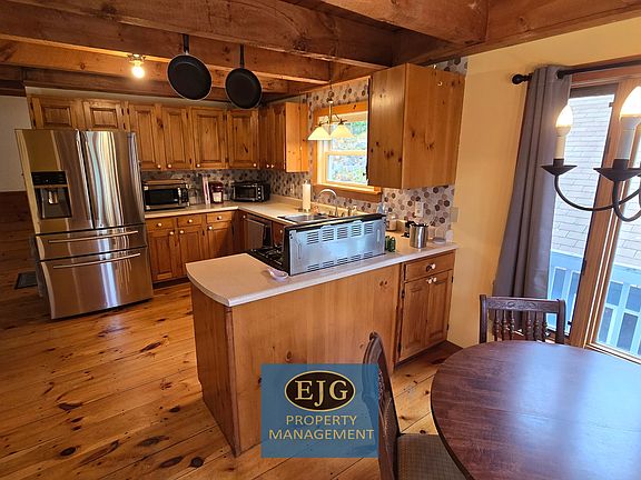 356 Chalk Pond Road Newbury NH $2800 3 Bedroom with 2 bathrooms. Situated in Chalk Pond Community within the Sunapee Hills Association. Amenities include a private shared sandy beach with a swimming raft, tennis courts, half basketball court, and playground. Just over 8 acres, this cape-style home is a cozy getaway for skiing in the winter, or enjoying the summer sun! Two car detached garage with storage above. Inside, a partially finished lower level with walkout sliding doors and plenty of storage. Upstairs, open kitchen and dining area, comfortable primary floor bedroom, and full bathroom. Living room with a wood-burning stove and a three-season room with access to the wrap-around deck. Upstairs, three bedrooms and a full bath. Use one of the bedroom for home office space or storage. Outside, the sloping lot provides plenty of recreational opportunities or hike out your back door. Nearby, conserved land and hiking is plentiful with views at the top of Sunset Hill. Near the Kidder Tract and Fells Historic Estate and Gardens. Located just minutes to Newbury Harbor with a restaurant, post office, gas station, deli, exercise classes, and summer concerts. The Newbury Harbor offers a sandy beach on Lake Sunapee and public boat docks. Vails Mount Sunapee Resort and Adventure Park is only a 10-minute drive. 15 minutes to downtown New London. Only a 15-minute drive to Interstate 89. We look forward to your application. $35 application fee per applicant Credit, background, eviction, employment checks. Section 8 and other housing vouchers may be accepted after review. Felonies maybe considered after review. Please email. Subject to errors and omissions. We will respond by email. Thank you. EJG Property Management Newbury NH
