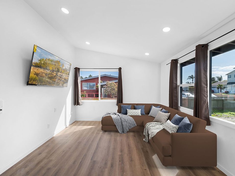 Fully renovated, 7 Bed/ 3 Bath Home in Imperial Beach! Just 3 blocks from the Beach this bright and clean home has all brand new laminate wood flooring throughout. 5 bedrooms located on the first level and 2 bedrooms located on the second level of the home. Large double pane windows in each room offering natural lighting throughout the home. All new stainless steel appliances and brand new side by side washer and dryer in the unit. High ceilings in the living room with an open floor plan. Fresh paint and new ceiling fans in each bedroom. Brand new bathroom vanities, toilets, and showers/tubs. Two brand new large flat screen TVs mounted to the Living Room and Entertainment Lounge of the Home. Two newer leather sofas, 1. Sectional Leather in the Living Room & 2. Leather Sofa in the Entertainment Lounge. Each bedroom has brand new Full Size Headboard/BedFrame, Mattress, and Nightstand with Lamp with Charging Plug Ins. (As Pictured). Mini fridge included in the Laundry Room of the home. Brand new window coverings in each room. Owner pays for Housekeeping Service once a month! Central heat throughout the home. Located on a wonderful quiet street. Tenant pays all Utilities. You do not want to miss this wonderful property that is brand new, fully renovated throughout, in excellent condition! Move in beginning of December.