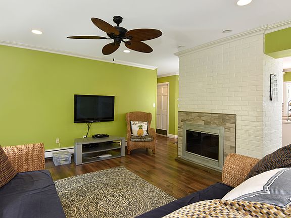 Lovingly updated and maintained expanded Ranch. Three bedrooms and newly renovated bath on main floor. Double sided fireplace opens to kitchen and living room/dining room. Kitchen has large center island perfect for casual dining and great for cooking. Laundry/furnace room off kitchen with door out. Patio at rear of house accessible through glass sliders from bedroom. Fabulous master suite on second floor with cathedral ceiling, lots of windows for bright, sunny and airy space. Master bath with jetted tub and separate shower. Large walk in closet.