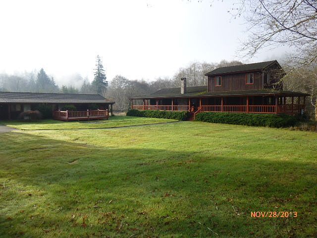 Sit on the porch & enjoy a river view; massive wrap around porch encompasses the entire home and every bedroom has it's own exterior entrance. Lots of wood throughout. Circular driveway; tile roof; heat pump plus a large finished room upstairs to use as a rec room or the make into extra bedrooms. Detached garages with toilet and sink and another room to use for hobbies or private escape. Homesite is level with lots of open area for a garden + play area. contact Sean Grogan for details: 360-581-7507 or seangrogan2000@gmail.com