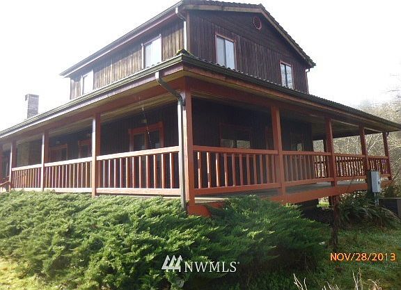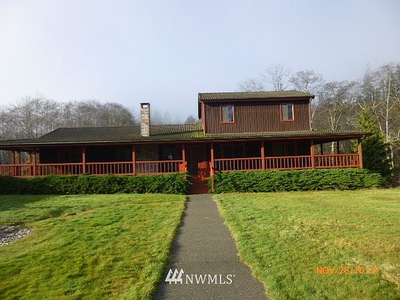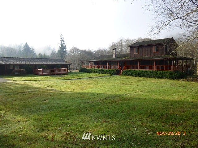 Country Retreat on nearly 15 acres. Sit on the porch & enjoy a river view; massive wrap around porch encompasses the entire home and every bedroom has it's own exterior entrance. Lots of wood throughout. Circular driveway; tile roof; heat pump plus a large finished room upstairs to use as a rec room or the make into extra bedrooms. Detached garages with toilet and sink and another room to use for hobbies or private escape. Homesite is level with lots of open area for a garden + play area.