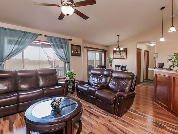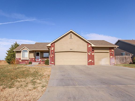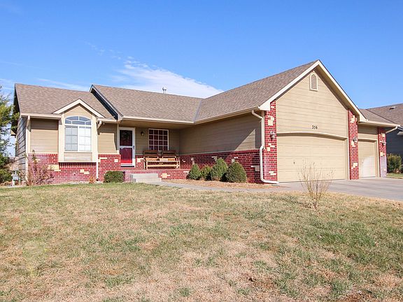 Nestled in the back of the neighborhood, this beautiful 3-bedroom, 2 bath home (Framed basement when finished would be 5 bedroom, 3 bath potential) features an attractive stone and brick exterior, a private backyard view, and a view of the neighborhood lake from the front porch. You'll enjoy the comfort and appearance of bay and boxed out windows, vaulted and coffered ceilings, walls with rounded corners, and an open living room, kitchen, and dining area. The master bath with two sinks and a second full bath on the main floor are convenient for busy mornings. Outside, you'll enjoy beautiful Kansas sunset views, grilling on the back deck, and steps lead down to the fenced back yard where there's plenty of room for kids and pets to play. Like to hike or run? Right around the corner you have access to the lighted City Hike and Bike trails. The neighborhood enjoys snow sledding on the hill in the back, too. Haysville School System is a plus and it's only a short walk to nearby Nelson Elementary School. The unfinished basement with view-out windows has framing and would provide an additional two bedrooms, bathroom, and more. The home has plenty of storage space, main floor laundry room, and work-space in the oversized 32 x 22, 3-car garage. Sellers are motivated, so come check out this great home!