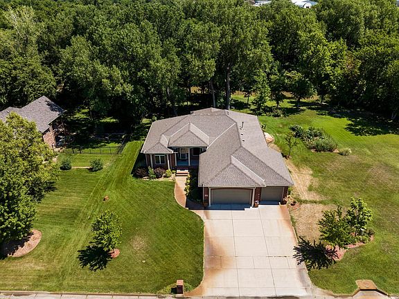 Welcome Home to Timber Creek Estates! This Haysville estate is your own personal retreat in the quiet Timber Creek Estate Neighborhood, with beautiful water views in your backyard and lake access right across the street. If you are looking for an abundance of space, you have found your next home. Spanning 3,119 square feet on a lot that's a third of an acre, you have found your next oasis that feels like you are miles from town, yet conveniently located just minutes from anything you might need. As you arrive at your future estate you will find a well-maintained front yard just inviting you to front covered patio. The grand entry door welcomes you inside, where you'll find an open layout that's perfect for entertaining. The living room offers multiple vantage points of your beautiful backyard that meets your tranquil creek. You will find all your friends and family gathering in the space to enjoy many joyous occasions to come. Your kitchen is open to the living room and has features every home chef desires and needs. Your granite counters pair beautifully with your tile backsplash and over the cooktop you will find more granite for a nice sleek design. You will find endless counterspace and cabinet space, along with an eating bar and walk-in pantry for storage. As you move through the home please notice the small details that have been built into this home making it extra special just for you like the hand-sculpted and distressed maple flooring in the living and dining rooms. The dazzling master suite has a tray ceiling to make the room feel even larger than it already is. With windows overlooking your personal oasis of a backyard you will love that view everyday! With an opulent en suite bath featuring granite double split vanities, soaking tub and an amazing walk in shower - this is the en suite you have been searching for. With so many incredible details you will love this space for years to come. This home features a split bedroom plan with three bedrooms on the main floor, one of which boost built in shelves and a window seat perfect for a reading nook. There is also a second full bathroom on the main floor with granite counters. As you make your way to the basement notice the designer carpet, just another feature to make this home extra special for you. In the basement you will find two more large bedrooms and a third full bathroom. The family room has a second fireplace. A wet bar/kitchenette is attached and makes this the perfect spot to host for movie night or game night with friends. With ample space and seating you won't be bothered by anyone as there is room for all. Through the double doors you will find a theatre room perfect for the game or a Netflix marathon. As you make your way through the theatre room you will notice a full concrete safe room located right below the front patio to protect you from unpredictable Kansas weather. You are reading this right five bedrooms, a safe room & a theatre room. If you want space to spread out and make this home, you have found it. Finally, the moment you walk out into your backyard- you will say I got have this home! This is the perfect space to relax and unwind - tranquil, peaceful you name it this is it. You could be relaxing on the covered deck, playing in the lush yard, fishing in the creek that is in your backyard! The covered deck with ceiling fan is a tremendous space to entertain the masses or just have an intimate cup of morning coffee. You can find yourself watching the wildlife of a colorful Kansas sunset in the evening. You will find this is where you will be spending all of your time. Attention to detail, spectacular craftsmanship and a very well cared and loved on home make this home one of kind and just right for you. This home has a quiet, tucked-away feel while being within walking distance of the library and farmer's market, and just minutes from parks, restaurants, local schools, and quick highway access. Please schedule your showing today!