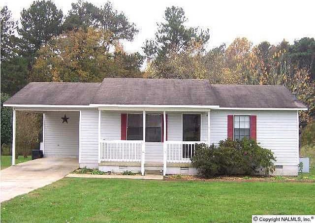 LITTLE MAINTENANCE, VINYL WITH VINYL TRIM. READY TO MOVE IN. CENTRAL AIR/CENTRAL GAS HEAT WITH BACK UP RADIANT HEATER LARGE LR, W/CARPET, 2 BR'S. 1 BATH. LAUNDRY W/LAMINENT FLOORING AND PANTRY. EAT IN KITCHEN. COVERED BACK DECK OVERLOOKING WOODED LOT AND PRIVATE BACK YARD- CITY LIMITS OF BOAZ. 8X10 METAL BLDG. ONE CAR CARPORT **PURCHASER TO VERIFY SQFT AND SCHOOLS**