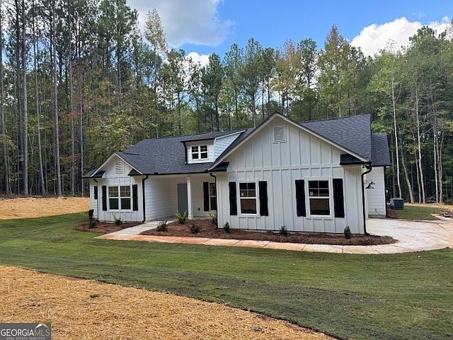 New Construction 4 bed 3 full bath home on a beautiful private 2 acre lot. The home is close to Thomas Crossroads, schools, and Peachtree City. This ranch home offers quartz countertops, stainless steel appliances, 9 foot ceilings, LVP flooring, tile shower, frameless shower door, built in electric fireplace, custom lighting package, spacious family room, open concept floor plan, 4th bedroom can be used as office. Buyers can still choose carpet from builders samples.