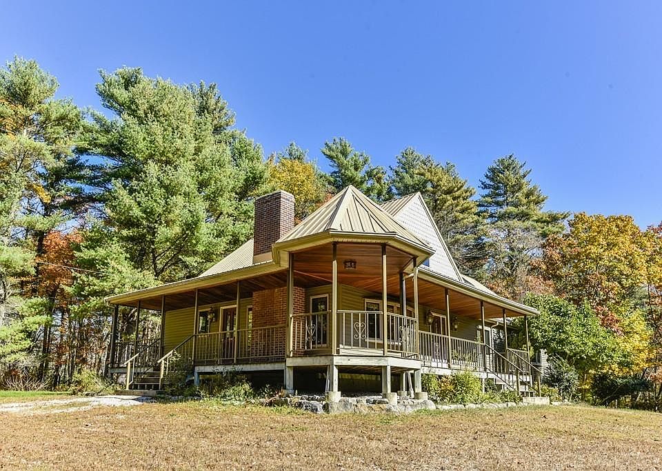 NEW PRICE! This home was built for holiday entertaining. This home is situated on 12+ wooded acres, abutted by conservation land. This is a Contemporary style three bedroom, two bath home with a wrap around covered front porch and two car garage. The open country kitchen boasts hardwood floors, stainless steel stove and refrigerator. The living room offers hardwood floors and a wood burning fireplace. Master bedroom has a master bath with step in shower and separate jetted tub, two additional bedrooms and full family bath and laundry room complete the first floor. The second floor is awaiting your plans. The basement has high ceilings and could easily be turned into additional living space, it also offers access to the two car garage that has heat and electricity.