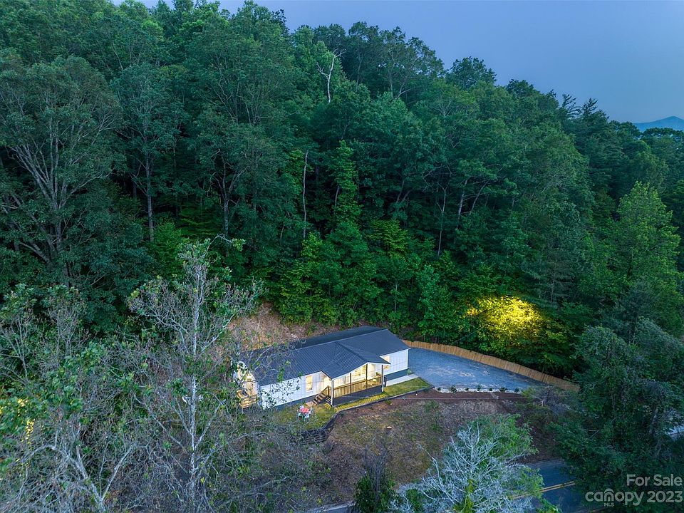 Brand new top to bottom affordable home in idyllic setting. Sunset mountain views off of the generous front porch with the relaxing sounds of the creek below. Smores by the side yard firepit off of the stairs. Split bedroom floorplan flows beautifully from living, dining and den to the outdoors. Sliding glass door beside wood burning, stone veneer fireplace with mantel and hearth opens to brand new kitchen with stainless steel appliance package, cast iron apron style sink and granite countertops. Pass through window blends kitchen into open floorplan. Generous master suite with brand new soaking tub and tiled walk in shower. Board and batten exterior siding, new metal roof, tongue and groove ceiling accents throughout. Heat with the new furnace or mini split systems. Sidewalks lead you to downtown Black Mountain, only 1 1/2 miles away! This outstanding full renovation is perfect for year round living with excellent schools or your weekend mountain getaway.