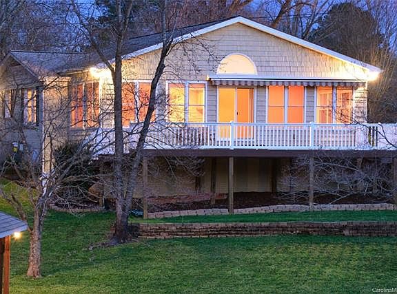 Move-in Ready Showstopper! Beautifully designed and decorated! This home has a fantastic living room with a cathedral ceiling and lots of glass looking out over the lake. Spacious open deck with a retractable awning. Large 2-slip boathouse with a sink for cleaning fish and a great water depth. 3 bedrooms, 2 baths with sculptured marble. Open kitchen with quartz countertops. Wonderfully landscaped yard with concrete driveway. Great storage building. Lovely location on the lake in a nice size cove. Conveniently located near grocery, restaurants and marina.