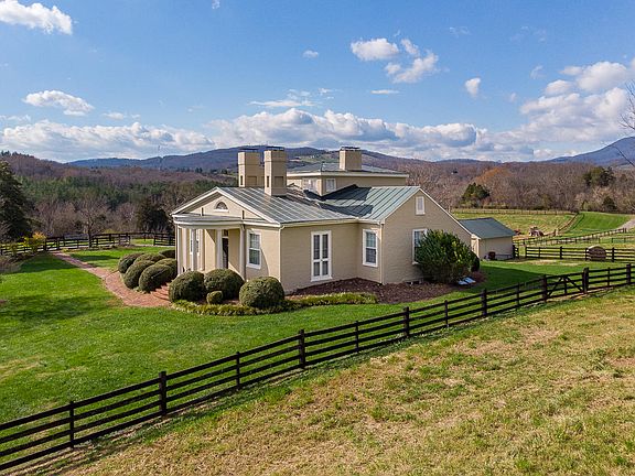 Historic estate located just a mile from Lexington, VA, upstream along the Maury River, this 51.27 acres sits atop a high meadow with views of farmland, the Blue Ridge Mountains, and a perfectly framed House Mtn. This significant and well maintained home (c.1815) has 3 bedrooms, 2 baths, updated kitchen, and wide center hall. A stone cottage, with bedroom, bath, and kitchen, predates the house and sits nearby. Riding ring, stable, outbuildings, pasture, hayland, and woodlands compliment this most unique property and setting. Legend and family history portray the property commandeered as a staging area and command for the the attacking force of Gen. Hunter. And later, of numerous visits to the Leyburn's by R.E. Lee, President of Washington College.