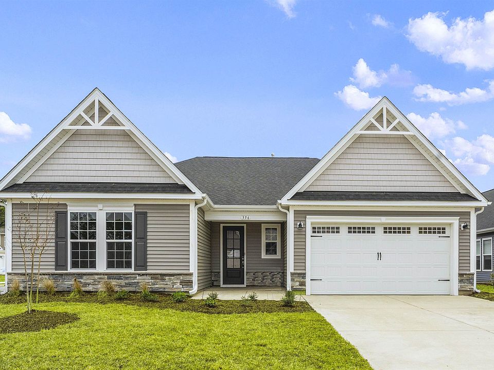 The Seashore floor plan is located in Seaglass Village of Bridgewater! The spacious, ranch style home features coastal inspired architectural accents, outdoor living area and an extended garage. A covered front porch welcomes you home to a large, inviting foyer. The kitchen has shaker style cabinets, large center island with sink & GE stainless appliance package. Bridgewater is a natural gas community! This Seashore has a gas furnace and gas tankless water heater. The Master Bedroom has a trey ceiling with crown molding and 2 large walk in closets. Dedicated laundry room is very spacious. Master bathroom features an oversized walk in fully tiled shower- no door, dual vanity, water closet with comfort height commode and large linen closet for storage. Enjoy the Carolina Sea Breeze out on the covered rear porch. This home is a must see on an oversized lot in Bridgewater! Schedule your appointment today. ***PHOTOS ARE FROM ANOTHER HOME***