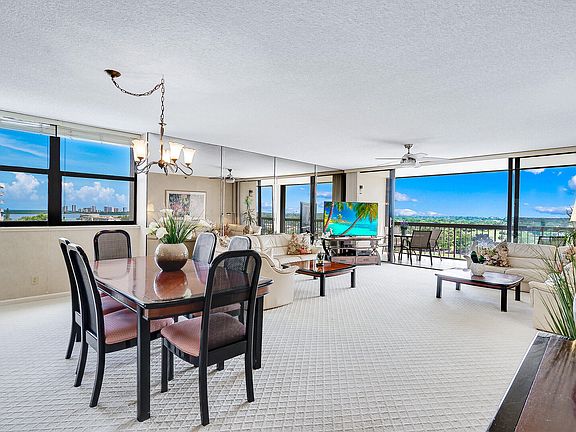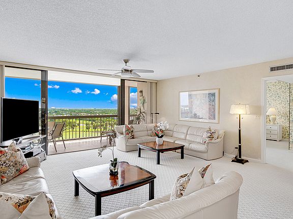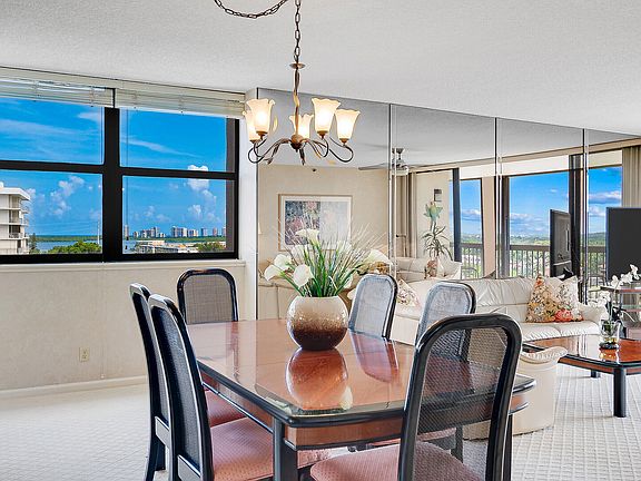 Welcome to the epitome of waterfront living in this corner condo with panoramic views of the Intracoastal and North Palm Beach Golf Course. This spacious floorplan lives more like a home with 3 bedrooms, 2 full bathrooms and a powder bathroom. The third bedroom is currently used as a den and has a custom Murphy bed. This home is immaculate and ready to move into. Roof is 2018, A/C is 2015, and water heater is 2016. The condo has an air conditioned storage unit and a premium covered parking space near the lobby entrance. One pet under 25 lb allowed. This prestigious gated community has a newly remodeled lobby, beautiful pool, gym, and clubroom overlooking the Intracoastal.