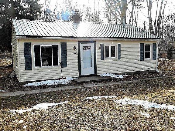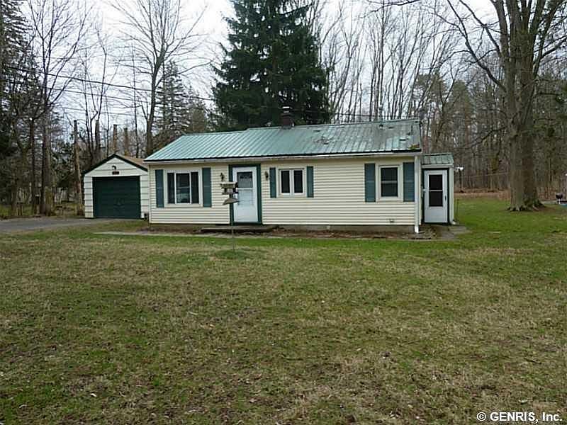 Adorable 2 bedroom house nestled on just about acre of land with a big private back yard beautiful mature trees, country location with Webster Schools. The pot belly woodstove heats the house to keep you warm on a low budget, metal roof, replacement windows, all newer doors, newer siding, upgraded electric. 1 Car garage and two nice sheds 1 for storage 1 a wood shed. Essentially maintenance free living and/or great starter home at a good price. Seller is not willing to make any repairs.