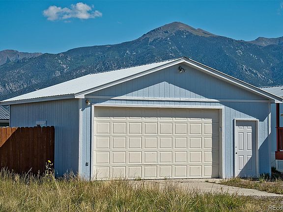 Welcome to affordable mountain living! Lovingly-maintained and recently updated with new floors and interior/exterior paint, this 2BD/1.5BA home is located on a consolidated lot in the beautiful Baca Grande Casita Park. The Baca is famous for its views and natural splendor, rustic 9-hole golf course & tennis courts next door, staffed fire house and EMTs, parks, greenbelt trails, and more. Electric service is underground, preserving views and reducing fire risk. Newly painted inside and out, the home boasts a refreshed and vibrant feel. It has a large detached garage, with ample room for shop/storage, and sits on 0.33 acres - half of which is open space to the west. The front porch is covered and freshly-painted, perfect for a bistro table or rocker. The home has bright natural light, with an open-concept great room enhanced by new, natural-grain waterproof flooring. The kitchen is done in a cute sky-blue, with LP range, tile backsplash, and open shelving over the peninsula counter, functioning as convenient passthrough. Two inviting bedrooms offer a restful escape, each bright with fresh paint, one with ensuite half bath. There is a full guest bath on the hallway, as well as washer-dryer. The back door leads to stairs down to the big backyard. There is partial board-on fencing, affording good privacy. With 285 days of sunshine annually, opportunities for gardening abound in the San Luis Valley. With 14,000-ft Sangre de Cristo peaks rising to the east, stunning, expansive vistas abound. Propane furnace and water heater. Durable metal roof. Public water and sewer service. Call today to schedule your tour - don’t miss the opportunity to make this charming and affordable property your own!