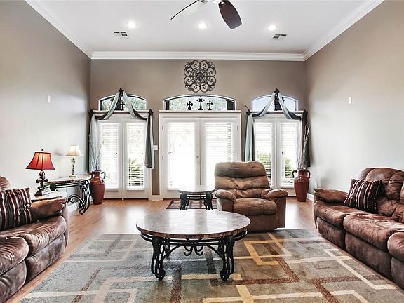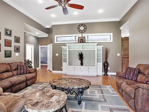 Beautiful brick home on 1.35 acres in Oak Ridge Estates. Property has a large shop with garage door, electricity, water and sink area outside. Entertaining family and friends outdoors will be a pleasure with the large back porch, salt water pool and outdoor kitchen. The outdoor kitchen has cypress cabinets, ice machine, small fridge, grill and gas cook top. No need to trek through the home to find a rest room there is a full bath outside under the porch. If its just a little too hot for some guest, they can enjoy the sunroom with large windows overlooking porch and pool. Inside the home, you will find a split floor plan, laminate floors, crown moulding throughout, 13' and 10' ceilings, and lots of storage. The kitchen has beautiful stainless steel appliances, including a wall oven. There is even an appliance cabinet. Master suite has trey ceiling, large walk in closet and specially designed bathroom for the "Shift Worker."