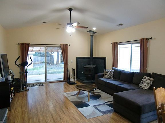 This 2006 built home is light and bright. There are 3 bedrooms and 2 full bathrooms, an attached 2 car garage and a good private well. The home is fully fenced on .54 acre featuring an open floor plan with a great master suite that opens onto the nice big patio. There are vaulted ceilings, a warm wood stove, and an office or den that could be used as a 4th bedroom. All household appliances are included in sale. The home was updated in 2016 and is in exceptional condition. There are two 20x30 shops with roll up doors. Both shops are fully insulated with a separate electric meter and heat pumps for climate control. There is a large fenced garden area, a rose garden, and four additional outbuildings that are fully insulated with electric power in. The setting is secure and park-like. Bring all offers.