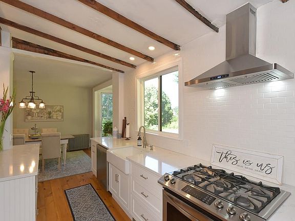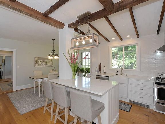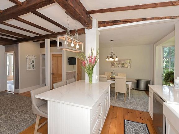 Make an appointment to see the gorgeous updating and remodeling that have been done to this antique treasure! Loads of living space, charm and comfort in this bright and sunny 5 bedroom, 2 full bath antique colonial. Beautifully updated kitchen and baths, refinished wood flooring, open floor plan and tall ceilings, updated 200 amp electrical/wiring and freshly painted interior & exterior. Loads of storage in the attic, outside storage shed and the massive barn. 1.46 acres of mature plantings, gardens and serenity surround this beautiful home.