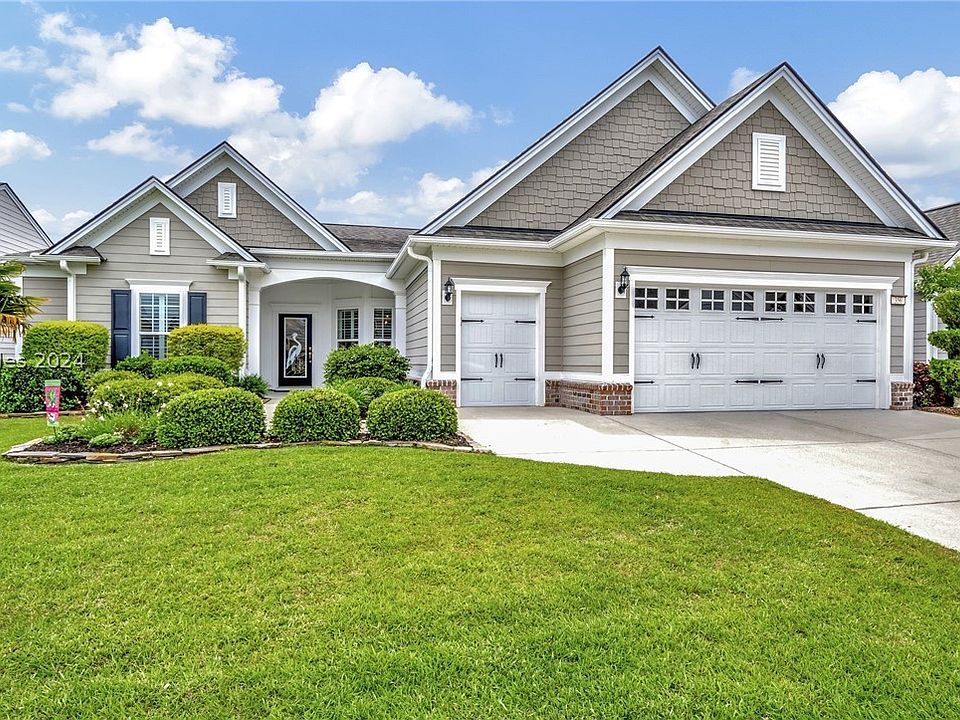 Rare Napa Valley Model – 3 Br, 2 Ba, 2412 Sq Ft - backing to Argent Lake Golf Course in Sun City Hilton Head. Front Porch, Foyer, Large Dining Room w. Decorative Columns, Open Kitchen w. Abundant Storage, Island w. Sink, Granite Counters, Tile Backsplash & Stainless Appliances. Hearth Room w. Gas Fireplace w. Built-in Cabinetry. Breakfast Room overlooks screened lanai, covered porch, open porch, & golf course. Primary BR adjoins Bath w. double vanity and walk in shower. Owners Closet w. window is the size of a room. Excellent storage. Oversize 2 Car Garage w. storage adjoins Golf Cart Garage w. separate door. Convenient to all amenities.