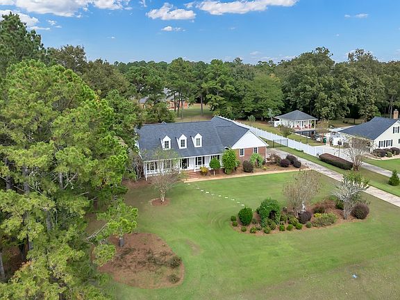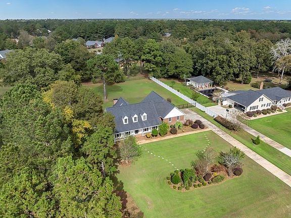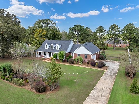 A stately 4BR/3BA home available in the HEART of Callaway Lakes- one of the finest neighborhoods in West Lee County! Sitting on over 1 acre this lovely brick home has a long drive that leads to the double garage with large utility room. Follow the landscaped path to the inviting front porch and quaint foyer that opens to the large living space with gas fireplace. The open floor plan boasts a bounty of natural light from the new vinyl windows that overlook a spacious backyard with an open patio that is ready for outdoor entertainment. The kitchen has granite countertops and a breakfast nook that flows into the formal dining room. The split bedroom design has a primary suite with his and her walk in closets and sinks. The second and third bedroom share their own hall with guest bath. This two story home has a beautiful staircase leading to a large bedroom with en suite bath and sitting area that could be utilized as a guest area, home office, or personal gym. There is a finished bonus room upstairs as well! Brand new carpet in bedrooms, luxury vinyl in the kitchen, and beautiful hardwoods in the living area with new paint throughout! 30 year architectural roof is brand new! Call a realtor today and don't miss out on this opportunity to be a part of this incredible community.