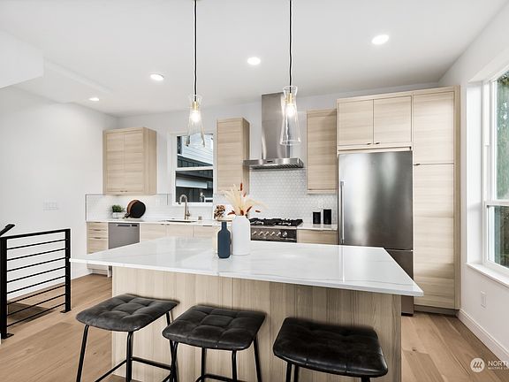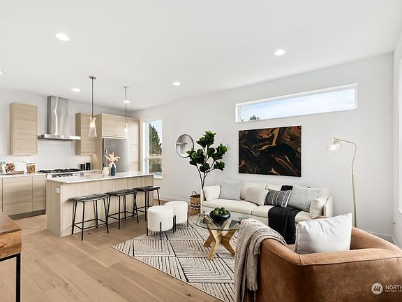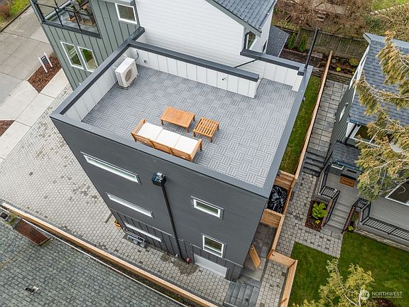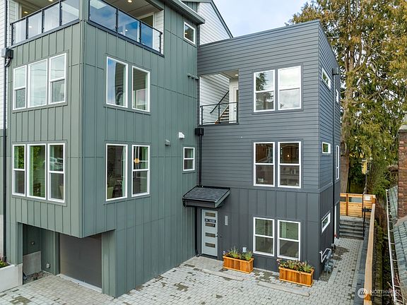 Welcome to Alchemy Design + Build’s newest community in Phinney Ridge! This lovely home which is one block to all the amenities on Greenwood Ave, also has breathtaking mountain views from the spacious roof top deck (pics from a hazy day so hard to tell)! Lower level features a bedroom & full bath, perfect for guests or rental space. Also an attached mudroom/laundry room w/a roll up door! The main level features a living room & gourmet kitchen w/island, quartz counters & stainless steel appliances. Upstairs find a powder room & the primary suite w/a large walk-in closet & ensuite bath. Included parking stall. Don’t miss this truly one-of-a-kind home walkable to everything!