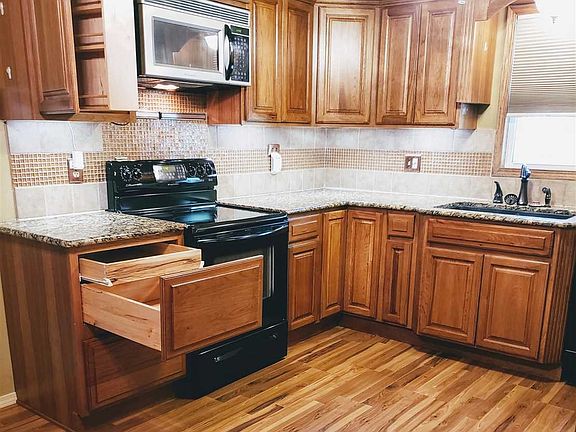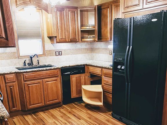This home can provide a lot of fun and entertainment! The chef in the family will be thrilled with the remodeled kitchen with hickory cabinets with built-in spice racks, double slide drawers, a trash pull out, granite countertops and big Whirlpool side by side and Frigidaire convection oven that stay. When in the mood for pizza they can head out to the covered patio and the pizza oven, waiting for anything you want to bake. There's a place for a mini frig under a granite counter in your outdoor fiesta space. A few steps away you can rest by a waterfall feature that flows and cascades over the rocks like a natural spring bubbling up. Turn around and start walking and you see a small doorway. Yes, it's a real man cave... with a (window) air conditioner, small sound system, a couple lights, tall ceiling, and a door that shuts (privacy)! Or, you could use it as a storage shed, (15' x 11'.7") but this property has another one of those, too (13'.8" x 11'.9"). A Main floor family room and a big basement rec room and game room give your family lots of room to spread out, for games and crafts. But there is also a great office in the basement, with beautiful cabinet storage added. The family that lived here enjoyed color, so if you like neutrals there are a few projects you'll have fun updating. It's just a couple blocks to Kiwanis Park, or a couple more to Towne West Square, so there is plenty to do in the neighborhood.