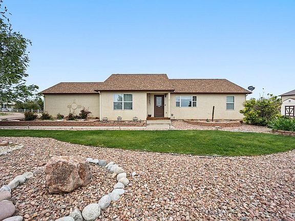 Welcome to this charming ranch-style home located Pueblo West with 3 beds, 3 baths, a 2 car attached garage and a large 30x56x16 outbuilding with electricity fits Semi and Trailer. Situated on 1.27 acres with mountain views, this property.The main level of the home features an open-concept living, dining, and kitchen area, all with durable LVT flooring that seamlessly flows throughout the space. The kitchen boasts plenty of cabinet storage and comes equipped with modern appliances—just 3 years old—including a refrigerator, electric range oven, dishwasher, as well as a washer and dryer. The spacious primary bedroom is complete with a full en-suite bathroom. 2 additional well-sized bedrooms with carpeting are also located on the main floor, along with a full bath and a convenient laundry area. Downstairs, the finished basement offers additional living space. A family room, a 2nd living room with a dry bar, a flex room that could be used as a non-conforming bedroom and a half bath. Outside, the large 30x56 outbuilding is 16ft tall with 2 commercial doors that provides endless possibilities, whether for additional storage, workshop space, or hobbies. There's also RV parking, a 12x16 shed, and a large dog run area. Enjoy mountain views from the open back deck. Additional features include mature landscaping, central air conditioning, and ample space for outdoor activities. Don't miss out on this one-of-a-kind property. Schedule a showing today!