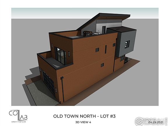 Brand new Old Town North contemporary. Slanted roof lines, bump outs, and extended walls make this edgy exterior stand out from the rest. Island kitchen with breakfast bar adjoins living/dining areas for the open plan you desire. Volume ceilings, wood flooring and lots of windows. Desk area included under stairwell; half bath conveniently located inside door from oversized garage. Upstairs a spacious owners' suite has large walk-in closet, a huge shower, and there's a private balcony! Second bedroom also has its own balcony with mountain views. Bedroom 3 has walk-in closet and easy access to hall bath, and laundry room is perfectly placed on this floor as well. In addition, there's a large, third floor deck for entertaining, barbecuing, or soaking up the views. This incredible home will be completed mid-October which gives you just enough time to pack up and move. Awesome location close to Poudre River Whitewater Park, biking/walking trails, breweries, and downtown Fort Collins. A definite "yes!"