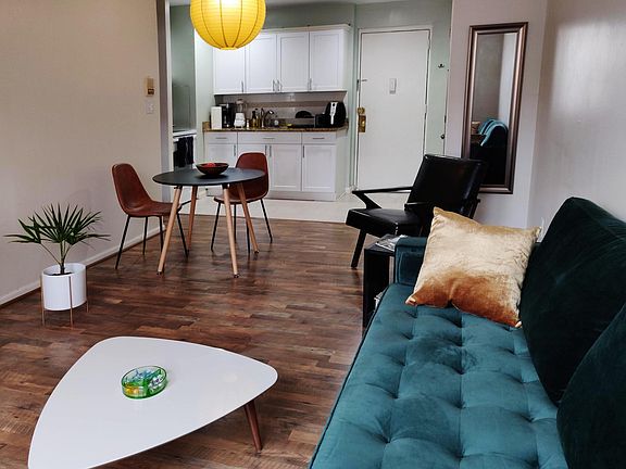 One bedroom condo with garage. Unfurnished. Pets welcome. Easy access to Manhattan. New laminate floors, cabinets, and triple-paned windows that keep the apartment quiet. New floor to ceiling 9" mirrored closet doors. Through the wall air conditioners in both rooms. Electric base board heat. Coin-op laundry room. Up and coming neighborhood with several restaurants and bars within walking distance. Close to grocery stores. First and last month's rent plus one month security and proof of renter's insurance required. Electric heat and hotwater. Tenant responsible for electricity.