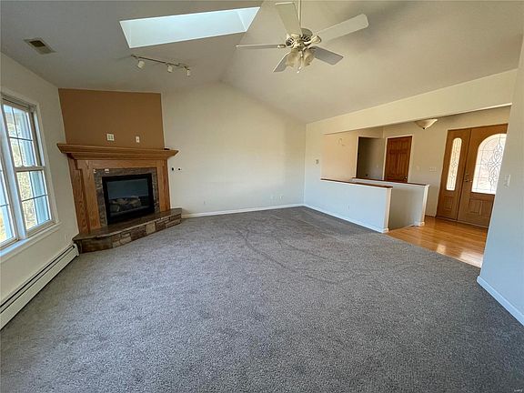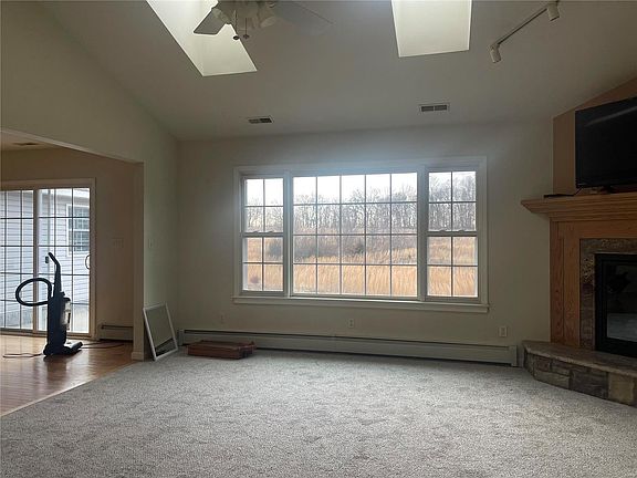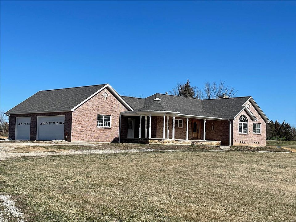 Situated on 8.1 acres the home offers 1,695 sq feet of living space on the main floor with a full unfinished walkout basement. Three bedrooms, two full bathrooms and one half bathroom. Master bathroom offers a stand alone shower and a jetted tub. Main floor laundry, some hardwood floors, new carpet in the living room and hallway. The living room offers a stone gas fireplace with a vaulted ceiling and double skylights. Kitchen offers custom cabinets with granite counter tops and stainless steel appliances. NOTE: The deck has been removed from the rear of the home, some interior trim work needs completed. No sidewalks or parking skirt in front of the garage.