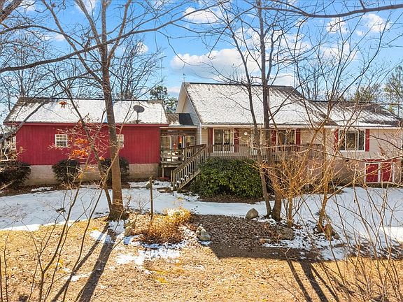 Escape the hustle and embrace serenity in this one-of-a-kind 2-bedroom, 2.5-bath retreat nestled on over 4 private acres. Inside, you'll find an open-concept design that seamlessly flows onto 2 large decks and a covered front porch ideal for entertaining or simply soaking in nature. Rustic charm describes this living room, with adjoining dining space and large bar with seating in the kitchen. Both bedrooms are oversized and have personal full baths along with add'l half bath and large laundry room. The covered carport isn't just for parking, it's a fantastic space to host gatherings, rain or shine. For the hobbyist or craftsman, there's a power-equipped workshop and storage building, giving you the space and tools to bring your projects to life.