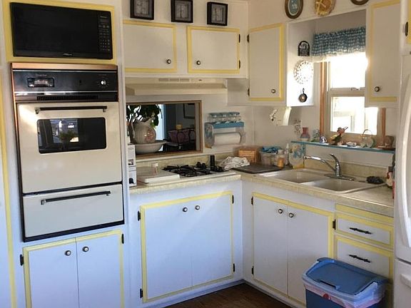 Great location in the park ! newer roof , newer vinyl siding and insulation , as well as dual pane vinyl windows throughout. Darling yellow, white and blue kitchen with built in oven, broiler and microwave. Refrigerator is negotiable, as are some other furnishing ~ just ask.. Newer walk in shower with disability access. And cabinets galore ! from the kitchen to the bedroom, the built-ins are impressive. Plus a linen closet with hookups for stackable washer and dryer. This is one of the best little secrets in the park !