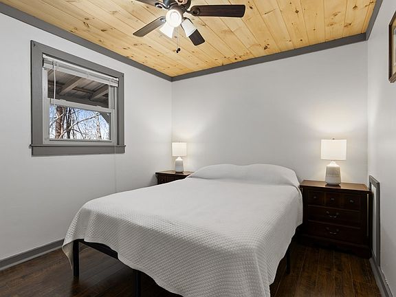 Charming Cabin Retreat Close to Town, Yet a World Away! Nestled in the Big Woods, this 2 bedroom, 1 bath cabin offers the perfect blend of rustic charm and modern updates. Recently renovated and refreshed, it features beautiful tongue-and-groove white pine ceilings, a brand-new HVAC system, and a huge new deck—perfect for adding a hot tub and stargazing under the clear mountain sky. Designed for both relaxation and adventure, the cabin boasts rocking chair front and back porches with seasonal mountain views, plus tasteful furnishings included for an almost move in ready experience. The second bedroom is a cozy loft space, adding to the cabin's charm. Need space for hobbies or outdoor gear? This property includes a 12' x 10' she-shed and a 12' x 24' workshop, providing plenty of storage. With No HOA fees or restrictions, this rental-friendly neighborhood offers endless possibilities. Enjoy world-class fly fishing on the Toccoa River, boating on Lake Blue Ridge, and miles of hiking trails just minutes away. Plus, you're a short drive to the shops, dining, and activities of Blue Ridge, Blairsville, Copperhill and Murphy! Whether you're looking for a peaceful getaway, investment property, or full-time mountain home, this cabin is ready for you to enjoy!
