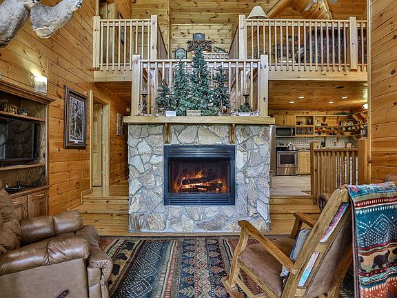 Welcome to Rocking Chair Road-the perfect home to sit, rock and enjoy the great mountain views! This well-maintained cabin boasts four bedrooms, three baths, and large entertaining spaces including screened in outdoor porch with fireplace, oversized deck space, hot tub area and plenty of room to spread out. House has both a game room and a large loft. Picturesque curb appeal and beautiful mountain backdrop. Enjoy the mountain life with wood and rock finishes, private wooded lot, lots of nature. Located on almost all paved roads, this home is just minutes from downtown Blue Ridge, all of the natural amenities the tristate area has to offer, and Murphy, NC, home of the exciting Harrahs Casino! The amazing convenience and privacy make this home the ideal investment for part-time, full-time living, or vacation rental.