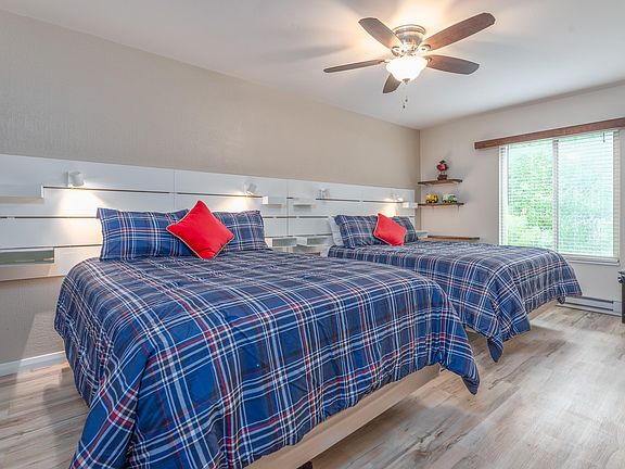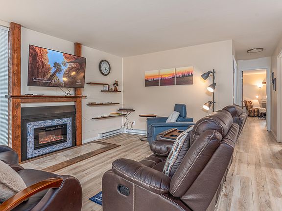 A fantastic remodel with plenty of room for your family! All new electric baseboard heaters, an electric fireplace so your renters can't ruin the fireplace tiles chopping wood, vinyl plank flooring, new furniture and built in closets, new ceiling fans and LED lights, new paint, new windows and sliding glass door for energy efficiency, Smart TV, Dish TV provided by the HOA, 2 queen beds & a king.