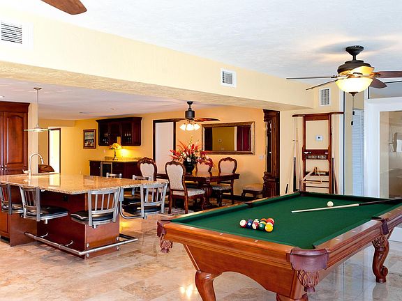 One of the most beautiful homes in St Pete Beach, 3123 SF, 5 bed/3 bath, private swimming pool, long dock where you can watch dolphins jumping every morning. Lots of good fish off our dock. 3 short blocks, 5-7 minutes walk to the world famous sugar white sand beach--St Pete beach. We are located at the south tip of St Pete Beach where all residential, quiet and peaceful. Home has been all upgraded, marble shower, whole house travertine floor, granite countertops, upscale stainless steel appliances, double fridge, fresh paint inside and outside, new roof, etc. All furniture in the photo are in storage. We are renting out this home unfurnished. Only pool table stays. We could possibly furnish at a higher rate. One year lease
