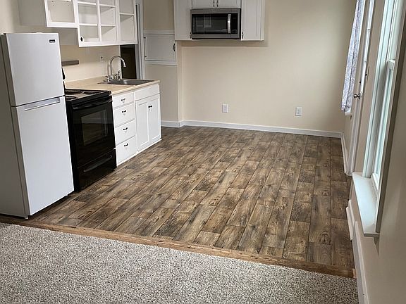 YOU MUST APPLY VIA ZILLOW TO SET UP A SHOWING 1 bedroom, 1 bathroom apartment with a kitchenette, a dining room, and living room. Large shared backyard and parking for 1 car, possibly 2. This will be professionally cleaned and ready for a new tenant! Tenent pays all utilities: electric and heat (heat pumps). Landlord mows and plows. Pets are considered, depending on the pet. Absolutely no smoking.
