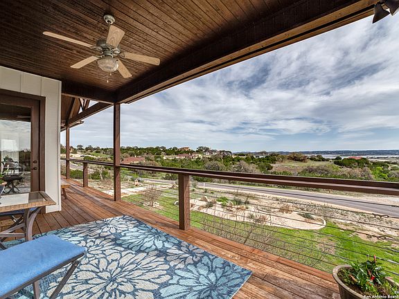 **$10,000 in BUYER Concessions Offered ** CANYON LAKE HILL COUNTRY RETREAT AWAITS YOU! Lake Views from almost every room inside, over 2000sf of covered balconies and patios outside and from the heated pool/spa! Texas Hill Country acreage in Mystic Shores overlooking Canyon Lake. Expansive open floor plan allows for great entertaining. The living room offers a great Ceiling to floor stone fireplace, adorned by custom built bookcases on both sides, a wall of windows and access to the balcony. The living room flows openly to the heart of the home - the Kitchen! Sit around the HUGE 10x6 granite island - while the chef prepares the meals with a large gas cooktop. The walls of the kitchen support great custom cabinets for ample storage. The large dining room is bright and airy with ceiling to floor windows - to capture all the views of the Hill Country and Lake! There is a second access to another balcony setting area. The primary suite offers a great relaxing room with windows to capture more views! There is a en-suite full bath with dual vanities and a large walk in shower. Off the primary closet you will find the laundry room. There is a secondary bedroom and a full bath also on this level. This unique home offers a HUGE guest suite on the first level across the breezeway from the main home. This suite provides a living, relaxing and sleeping area - with a full bath and closet. The Breezeway is just that - always capturing incredible breezes to relax and entertain on.... it has amazing barn doors to limit the drafts in the winter time. Let's work our way up the breezeway to the relaxing Heated pool and spa! Relax, splash, eat, drink, repeat! Take in the views of the lake and the countryside while sitting under hundreds of stars lighting up the Texas sky! There are two storage room/workshop areas off the breezeway for additional storage. The owners have installed a new generator interface to help run power during outages and a 220 plug in the garage. Mystic Shores HOA offers a pool, sports courts, parks and playground. Enjoy privacy in this highly desired subdivision - in the Hill Country - minutes from shopping and dining. Owner has an additional 1 acre Lot adjacent to this one for sale - 334 Secret Way - $150,000.