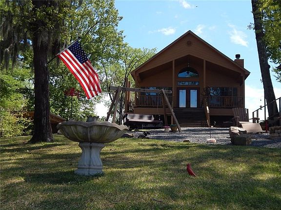 5 Yr Old Shoreline Drive Beauty! This newly built gem has a lot to offer! 2 bedrooms and 2 baths downstairs plus a loft bedroom/office with a half bath. Nice accents with aspen wood, a barn sliding door, rounded windows, 2 inch wood blinds, and a fireplace that has a blower to circulate heat. The home was built with hurricane straps, Pex plumbing, blown insulation, insulated windows and french doors. The whole house generator and 250 gallon propane tank are more of the items that make this place special. The outdoor kitchen is covered and there is plenty of limestone parking area! Sit by your firepit and enjoy the breath taking views of the lake or go fishing while your underground sprinkler system waters the lawn. A nice dock with a boat lift and covered side deck is pretty darn convenient too!