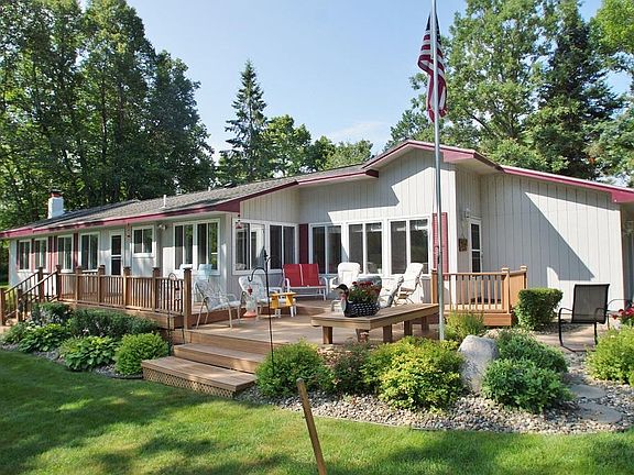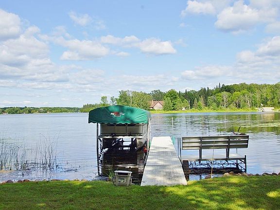Fantastic opportunity to enjoy lake living at its best! 210 ft of level shoreline on demand Lawrence Lake with connection to Roosevelt Lake and over 1,744 acres of lake access. Wonderful lake views from most living spaces in this well maintained one level 3BR 2 Bath home on .76 acre lot. Relax or entertain on the multi level deck with newer firepit or in the sunroom overlooking the manicured yard and lake sunrises. Features include open floor plan, wood stove in living room and the master suite addition with private bath and walk in closet. Tons of storage space with attached three car garage and two additional storage sheds on the property. Just steps to downtown Outing or boat to restaurants, shopping and Roosevelt Lake. Nearby ATV and Snowmobile trails too. New roof in 2023 and furnace in 2017. Enjoy lake life in north central MN less than 2.5 hours easy drive from the metro.