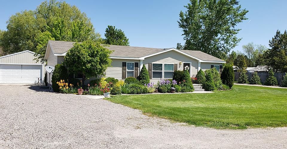 You won't want to miss this one! Country living with close freeway access. This 3 bed 2 bath manufactured home built in 2005 has been loved and well taken care of. The back of the home has a large deck with adjacent cement pad. The back deck has a ramp rather than stairs. It sits on .9 of an acre with a large garage, RV parking, lean to shed, garden tool shed. 2/3 of this property has an underground sprinkler system. There are plumb, cherry, apple and apricot trees that are all established and producing fruit. The master