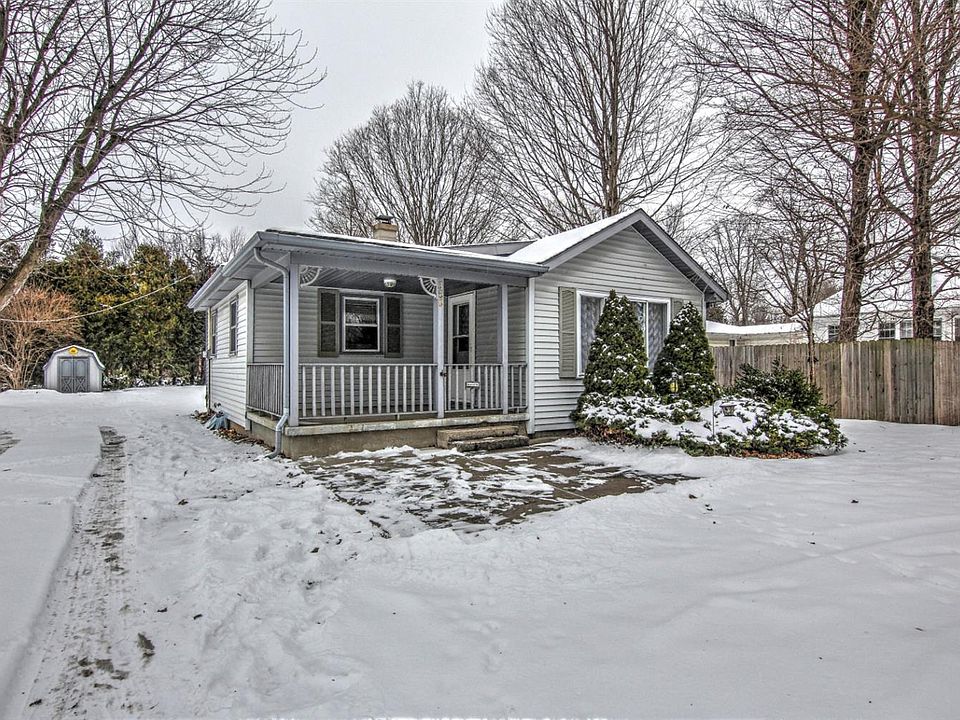 Absolutely adorable ranch home with over 900 finished sq. feet and full basement, located on great-sized, partially fenced lot! Home has been freshly painted, with new flooring throughout, along with new staircase to basement. Newer roof, siding, furnace, A/C, and more! Plenty of space to relax and enjoy the outdoors on your front covered deck/patio or rear deck areas! Storage shed out back, too! Nothing left to do but move in! Don't miss the opportunity to view this dollhouse!