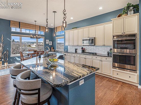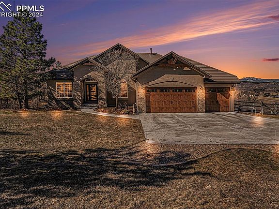 Nestled on a pristine 5.06-acre corner lot zoned for horses, this stunning residence offers an unrivaled blend of privacy and luxury in one of Douglas County’s most prestigious neighborhoods. The home welcomes you with a beautifully landscaped new concrete driveway and striking Clopay garage doors. A grand entry through new storm doors sets the tone for an impeccably designed interior.    The main floor is anchored by a primary suite that is nothing short of an oasis, featuring a cozy sitting area with a gas fireplace, and a recently remodeled 5-piece bath with a freestanding tub and an oversized walk-in closet. Accommodate guests comfortably with an additional bedroom and full bath. The office is a masterpiece of built-in shelves and cabinetry, perfect for remote work or managing household affairs.    Entertaining is a delight in the dining room, complete with a butler’s pantry and large windows. The kitchen is a chef’s dream with slab granite countertops, a functional island, and a nook for casual dining; all complemented by stainless steel appliances including double ovens and a new backsplash. Transition easily from meals to relaxation on the 315 square foot deck, recently remodeled with maintenance-free Fiberon decking and a wooden pergola, providing breathtaking views and seamless access to the lush grounds.    The living room is a showcase of craftsmanship with a new stone surround gas fireplace and expansive windows framing spectacular views. The finished basement extends the living space substantially, featuring an oversized great room with walkout access to the backyard, additional storage, and two guest bedrooms with a full bathroom.    Recent upgrades such as a Tuff Shed, upgraded hardwood floors on basement stairs, and meticulous attention to detail throughout make this home truly turnkey. Experience the luxury of equestrian living with a perfect blend of comfort and style at this Bell Mountain Ranch gem.