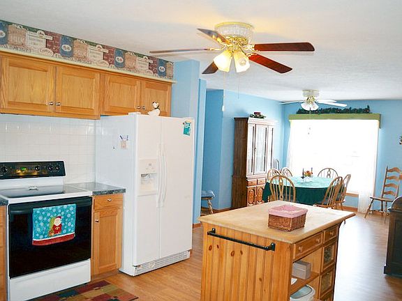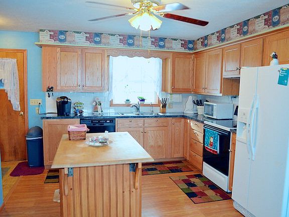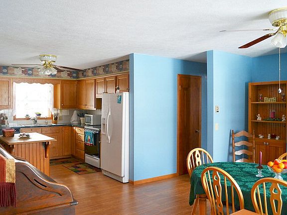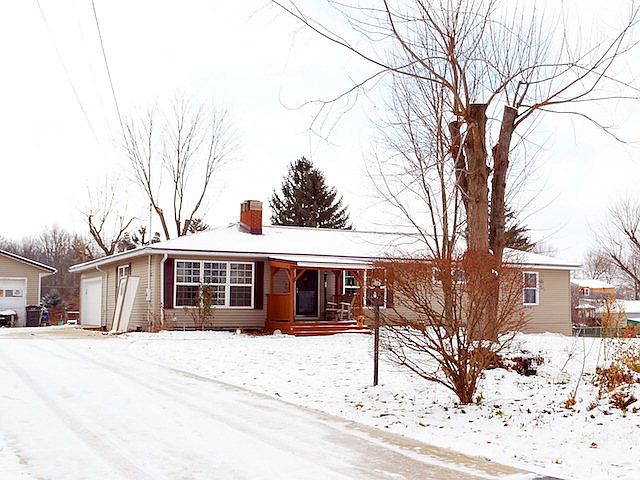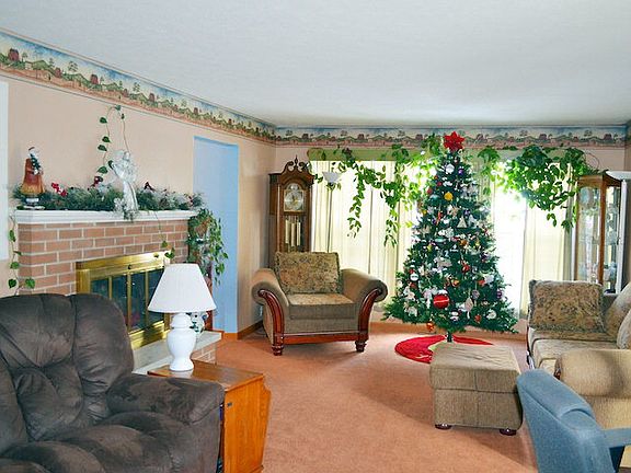 Three bedrooms, two baths, ranch home including a 448 sq. ft. master suite addition. Large living room with fireplace and oak cabinetry in the kitchen. Full basement with family room offers a second fireplace with a wood stove. Updates include metal roof, concrete driveway, and replacement windows.