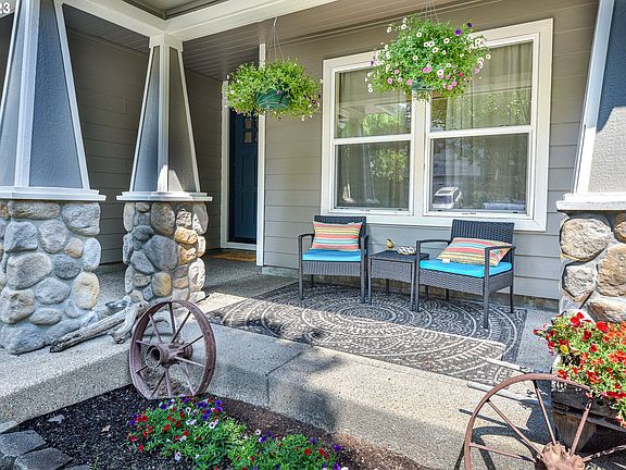 The front covered porch welcomes you into this spacious and attractive home! Situated in sought-after Ambleside Meadows, this residence combines modern amenities with timeless appeal.Inside be greeted by an open floor plan on the main level.Additionally, there are individual rooms that offer versatility and privacy.The lovely dining room is currently being used as an office but can easily be transformed into flex space to suit your needs. This room features French doors, a vaulted ceiling, and hardwood floors.The living room is a true highlight, boasting an abundance of natural light and offering a nice view of the surrounding area. Cozy up by the gas fireplace and appreciate the high ceilings that create a spacious atmosphere.The sliding door provides easy access to one of the three decks.The kitchen is equipped with stainless steel appliances, including a double oven, a new dishwasher, and tile floors for easy maintenance. The built-in kitchen floor vacuum adds convenience to your daily chores. Enjoy your casual meals in the eating area.The main level features the primary bedroom.The bathing room boasts a soaking tub and a walk-in glass shower,walk-in closet, along with an additional closet, provides ample storage space.With access to the deck, step outside and enjoy your morning coffee.Upstairs, you'll find two additional bedrooms that share a full bath.The lower level is perfect for hosting guests and entertaining. It features a huge family room with a wet bar, creating an ideal space for social gatherings. Additionally, there are two more bedrooms and a full bath.The surround sound system enhances the entertainment experience, while the central vacuum system adds ease to cleaning. Fiber optic internet is available, and the equipment can stay if desired.Recent updates; interior and exterior paint, as well as new carpet in 2022.New A/C compressor, with annual maintenance prepaid.Conveniently located near new Willamalane Arrow Park, and easy access to bike paths.