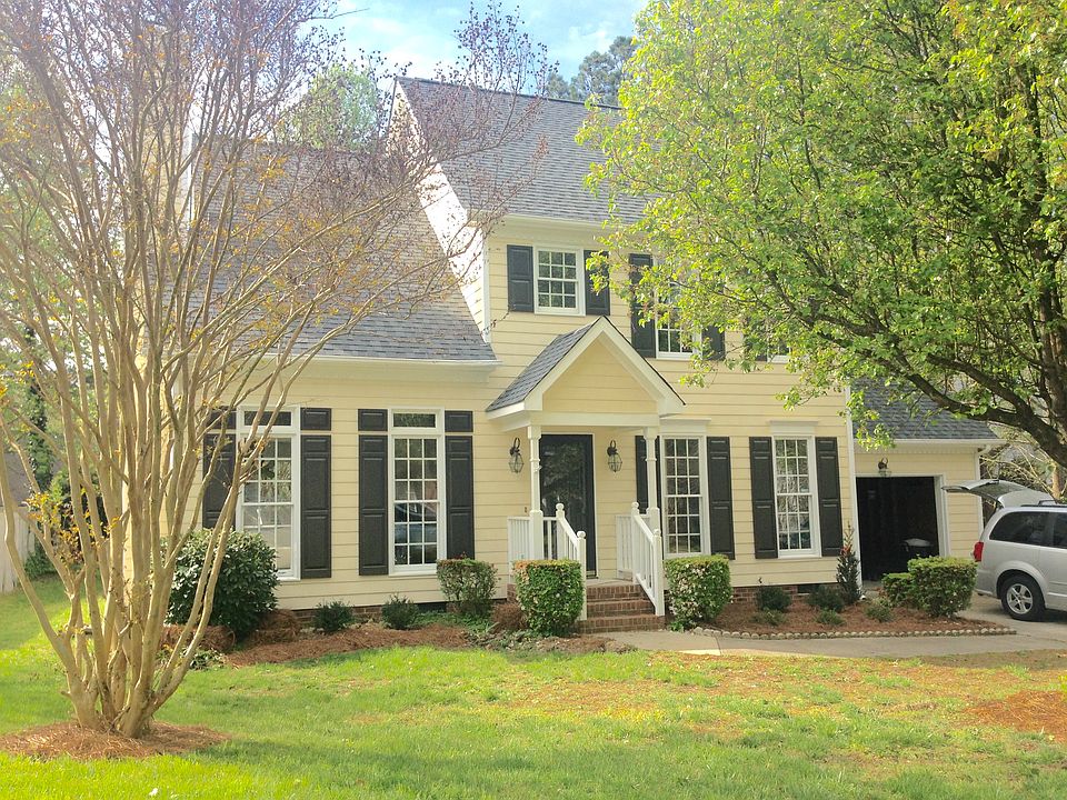 Beautifully completely updated home in Evian at Neuse Crossing. NEW roof! NEW floors! All NEW cabinets! NEW granite counters! NEW tile backsplash! NEW stainless appliances! NEW paint inside AND out! NEW fixtures! First floor guest suite w/full bath! Cathedral ceilings in family room, master & master bath! Formal dining + breakfast room. Enjoy the privacy on the recently painted deck overlooking the fenced in yard. 1 car, over-sized garage! Great location. MUST SEE!! Coming on Saturday May 28.