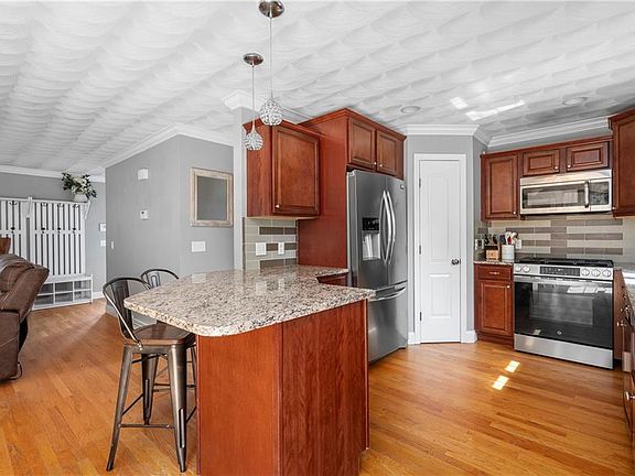 Young open concept colonial in a prime North Cumberland location! Hardwood floors in the living room and flowing into the dining area. Kitchen features sharp cabinetry, granite countertops and newer stainless appliances including a great new gas stove and cooktop. Sliders to a deck and the flat usable backyard protected with a white vinyl fence...perfect if you have a pup or some littles! Shed protects all your yard equipment. First level has a convenient lavette. Second floor has two good sized kids room and a full bath for their use. Third bedroom- the primary suite - has ample closet space and its own full bathroom. Basement has a BRAND NEW HVAC system, storage area, room for a small gym, and a special finished bonus room-- great for a musician or for a home office or kid playroom! Washer and dryer to remain. Central Air. Convenient location-- close to Diamond Hill Park and all highway access super close to 295/146/495. Driveway has additional spots. Zillow is INCORRECT -- we are not in a Flood Zone and it is NOT REQUIRED with our mortgage! See you soon!