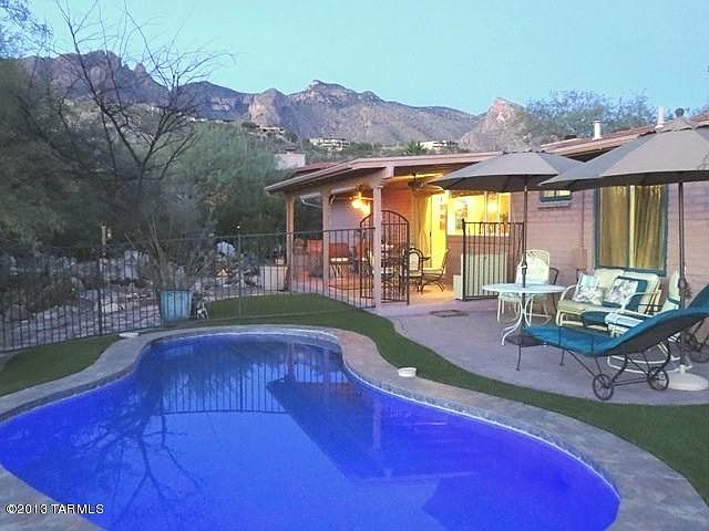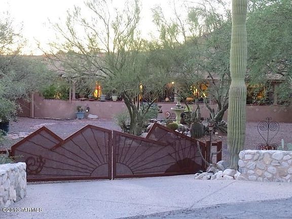 For more information on this property, contact the Listing Agent, Tom and Janie Ebenhack at (520) 232-2109 or Team@TucsonHomes.com. Magnificent Foothills compound with great City and Mountain views! Enjoy beautiful sunsets by the relaxing salt water pool with Ozonator. Or sit under the full length front porch and take in the lush landscaping of the entry court. Includes Guest House, Studio, Workshop, plus 300s.f. secure storage in basement below Guest House! Fireplace. Granite. Stainless appliances. RV height carport. Gazebo. Citrus trees. Great bird watching. Surrounded by natural desert. As you drive through the artistic entry gate, you'll get a little taste of Paradise in the Catalina Foothills!