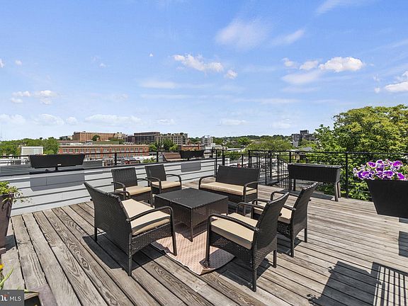 Just in time for July 4th - a private roof deck with 360 degree views of citywide fireworks! Gorgeous 3BR+Den, two-level condo with secure parking, open floor plan, high-end kitchen & baths, PLUS three private outdoor spaces including two balconies and the roof deck. Fabulous kitchen with stone top, waterfall island that seats six - gas range with externally-venting hood, French door refrigerator, built-in microwave, dishwasher, disposal and wine fridge. Two industrial pendants, recessed LED lights and under-cabinet strips light the work areas. Large bedrooms, two with ensuite bathrooms. The third bedroom with a deep closet on the living level has been opened up and staged as extra living space but has a big closet and can easily be converted back to a bedroom. The large den, also with a closet, is perfect for a gym, office or guest accommodations. The three full bathrooms have Kohler and Grohe faucets, glass shower enclosures, Kohler toilets and designer tile. The 2nd bedroom-adjacent bath has a tub/shower and dual vanities. Hardwood floors, Pella windows w/ deluxe HunterDouglass shades or roller blinds, recessed LED lights and nearly 9' ceilings throughout. Walk to Columbia Heights or Petworth Metro stations. One block to 11th Street amenities, including The Coupe, Queen's English, Red Rocks, Makan, El Chucho and Odd Provisions to name a few. Low, $200 monthly condo fee in a two-unit, self-managed condo. Professionally landscaped garden. Pet and investor friendly. Parking with roll-up door is separately deeded and included in list price. DON'T MISS THE 3D TOUR to get the best preview of the rooftop views.